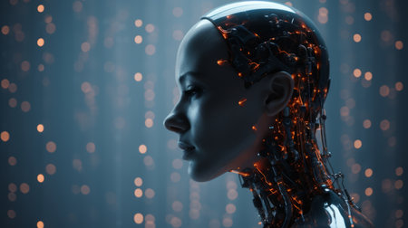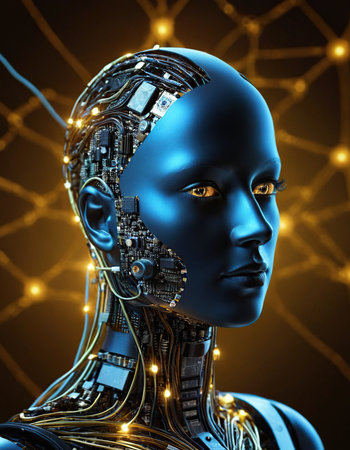 3D illustration of female android with artificial intelligence