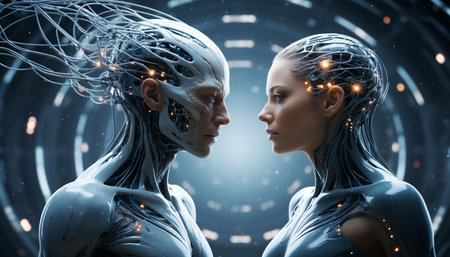 Cyborg woman and man cyborgs. This is a 3d render illustration