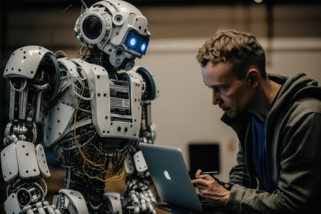 person, using machine learning to teach robot new skills, created with generative ai