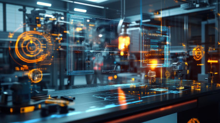 Futuristic industrial production line using augmented reality and automated machinery