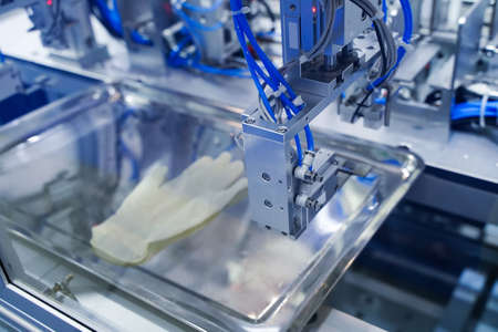 automatic machine for the manufacture of medical protective gloves. Coronavirus and Covid-19 Protection