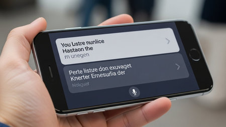 A person holds a smartphone displaying text while in an urban courtyard setting, capturing a seamless blend of modern technology and daily life.