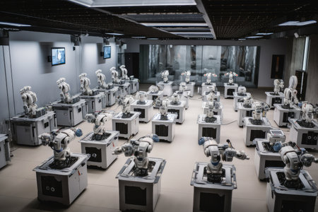 a room filled with robots, each one programmed to perform a specific task, created with generative ai