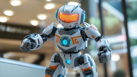 This vibrant interactive robot action figure features LED lights and intricate design elements, highlighting innovation in technology and engaging play for all ages.