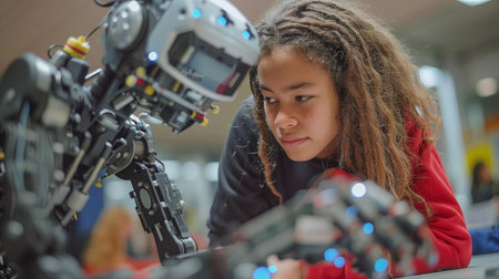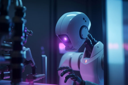 person, using machine learning to teach robot new skills, created with generative ai