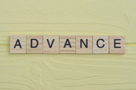 Concept presented by crossword with words finance with wooden cubes on wooden background.