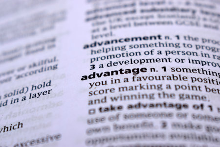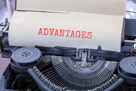 Advantages symbol. Concept word Advantages typed on beautiful old retro typewriter. Beautiful white paper background. Business advantages concept. Copy space.