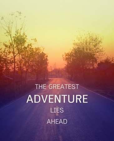 Adventure Discovery Lifestyle Travel Concept. Inscripton On Young Couple Enjoying Walking Along Sandy Shore Background