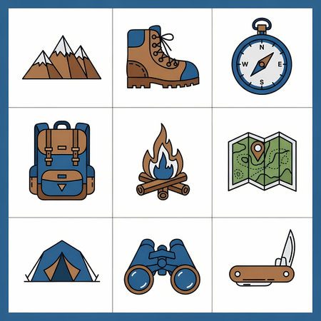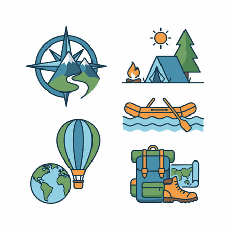 outdoor adventure travel icon set