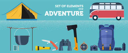 A set of accessories for active adventure in nature. Vector illustration