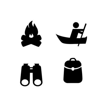 Camping icons set. Survival and traveling silhouette color vector symbols isolated on white