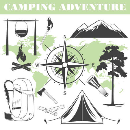 Vector Camping Concept with Compass isolated on white background
