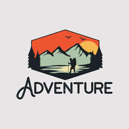 Mountain illustration, outdoor adventure. Retro style adventure logo. Vector illusrration