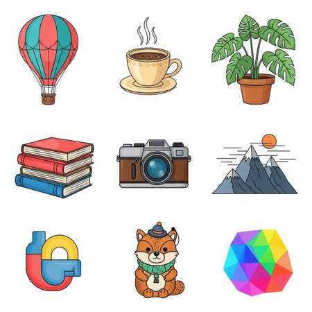 This image features a set of icons, perfect for representing various summer activities and leisure.