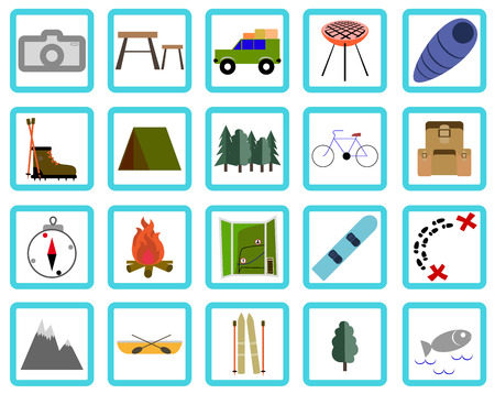 Set of camping icons on a white background.