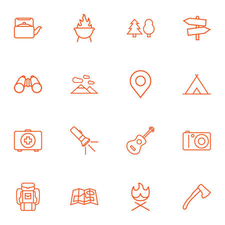 Icon collection of adventure in the wild and outdoor activities. Suitable for design element of campfire, vacation, and adventure icon set. Outdoor outlined icon set.