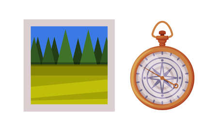 Compass with Arrow and Photo Card as Travel and Tourism Symbol Vector Set