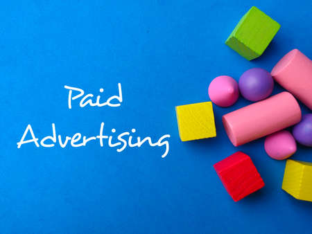 wooden elements with a word ADS, with space to copy the text.close up of wooden elements,Business Concept.3D rendering on blue background.