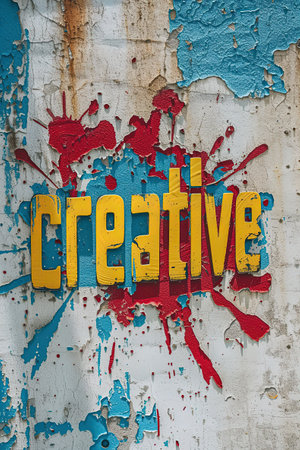 The letter of be creative in variant texture with bright light colorful color with making or constructing with musical element and art equipment with 3D design. Recreation concept. Lettering. AIG42.