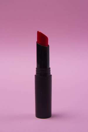 Decorative cosmetics. The lipstick is dark pink. Isolated on white background.