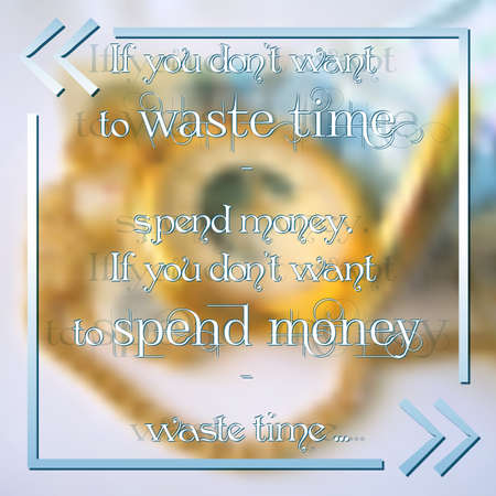Motivational typographic quote in frame on light blurred background - If you don't want to waste time spend money, If you don't want to spend money waste time. Typographic design. Vector illustration