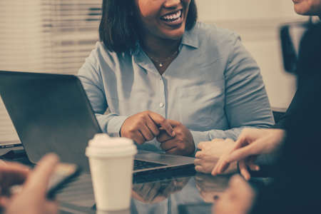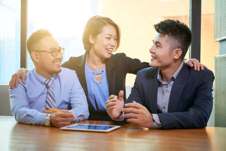 Friends enjoying working together as business team