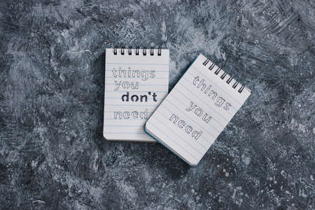 minimalism or self-improvement and introspection concept, notepads with texts Things you need and Things you dont need next to To Do list