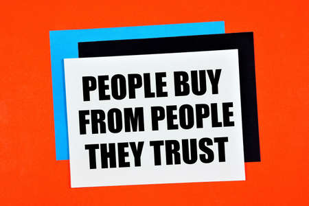People buy from people they trust. The inscription on the sticker. A positive attitude based on confidence in reliability, honesty, integrity