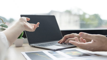 Business Corporate meeting using laptop at conference table discussing ideas for their business project in modern office