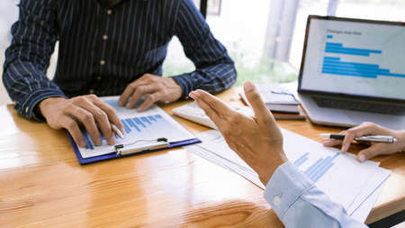 Close up Business people meeting to discuss the situation on the market. Business Financial Concept