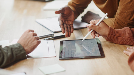 Cropped shot of businesspeople discussing on their business strategy with digital tablet and paperwork