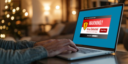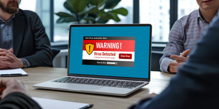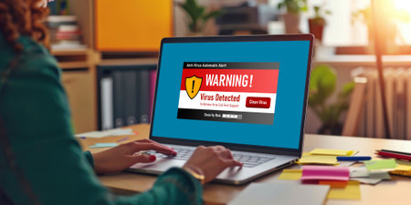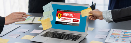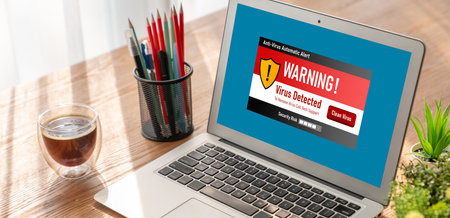 Virus warning alert on computer screen detected brisk cyber threat , hacker, computer virus and malware