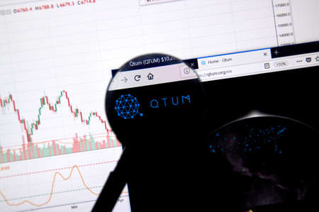 MONTREAL, CANADA - JUNE 20, 2018: Qtum crypto currency home page. Cryptocurrency is a digital currency in which encryption techniques are used to generate and transfer funds. Site - qtum.org