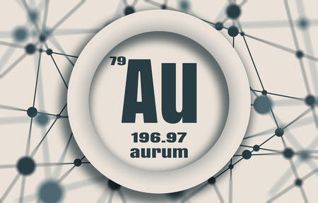 Aurum chemical element. Gold metal sign with atomic number and atomic weight. Chemical element of periodic table. Molecule And Communication Background. Connected lines with dots.