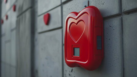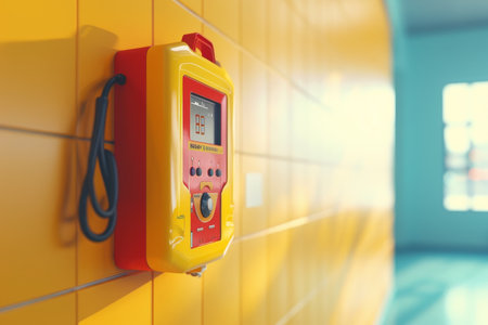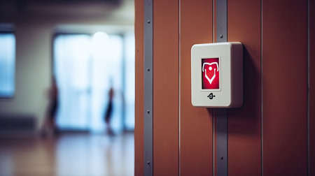 Close-up of defibrillator mounted on wall ai generated