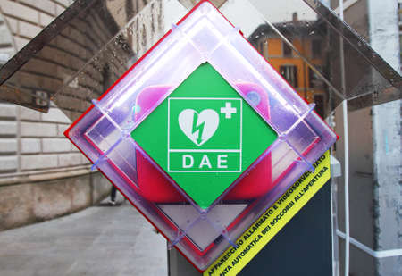 Station of an automated external defibrillator (AED) in an Italian town (Lecco)