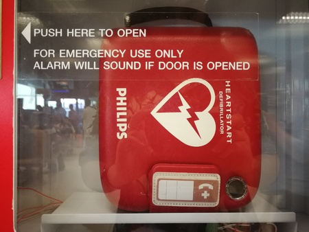 emergency defibrillator at airport