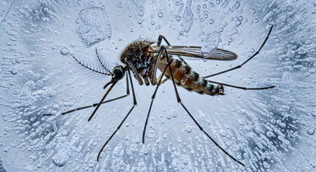 A detailed close-up of a mosquito feeding on human skin captures the beauty of nature and highlights the insect's role in ecosystems.