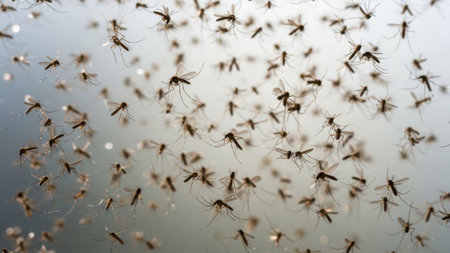 Mosquito in the morning. Close-up of a group of mosquitoes.