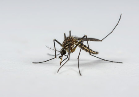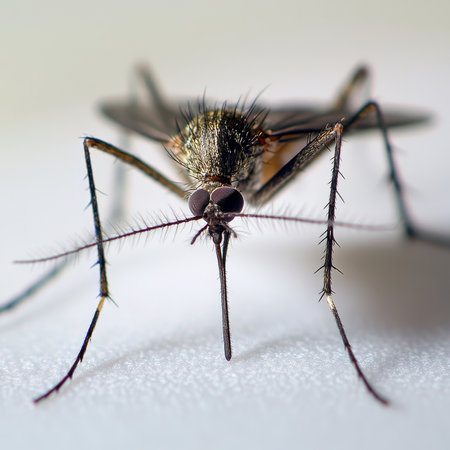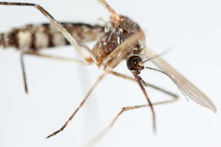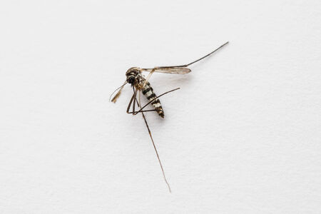 Macro photograph of a mosquito, a pest Arthropod, on a white surface