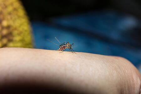 Aedes aegypti Mosquito. Close up a Mosquito sucking human blood