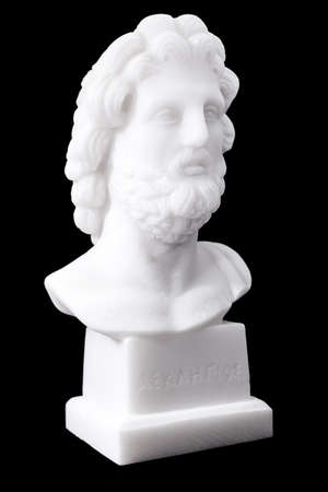 Statue of ancient Greek god of medicine and healing Asclepius, isolated on black background