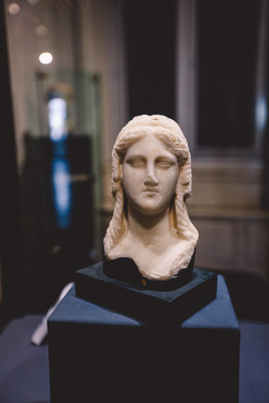 Moscow, Russia - February 16, 2016: Ancient marble portrait bust in Pushkin Museum of Fine Arts.