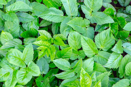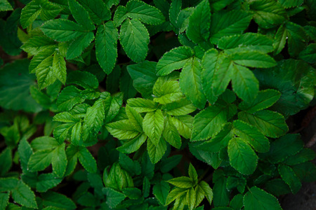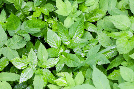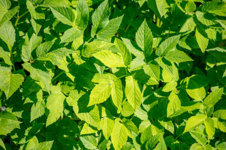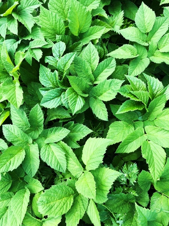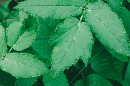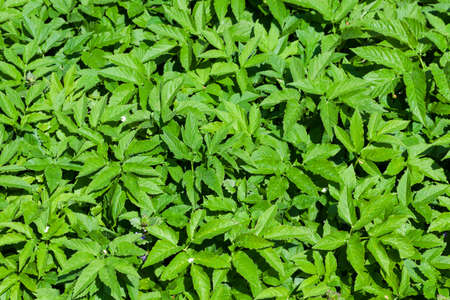 Green leaves pattern background, natural background and wallpaper. Nature of green leaf of Aegopodium in garden at summer. Natural green leaves plants using as spring background. Selective focus.