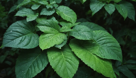 Lush green leaves from different plants form a vibrant natural backdrop, highlighting the beauty of foliage and the essence of nature in a healthy living context