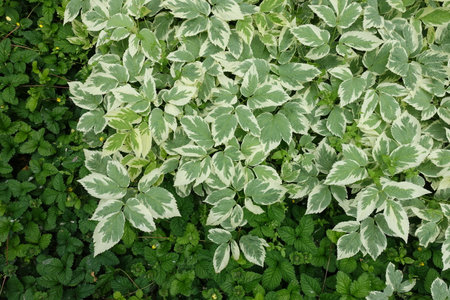 Aegopodium podagraria Variegata is a variegated form of the Aegopodium podagraria plant. Has attractive green and white foliage. This plant is often used as a ground cover in gardens.