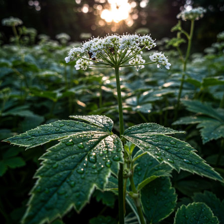 The Angelica at dawn soft golden sunlight kissing leaves clean air natural color