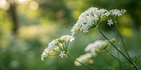 Queen Annes Lace flower beautifully bloomed with natural background. Created by Generative AI.