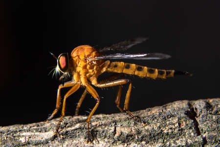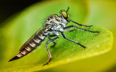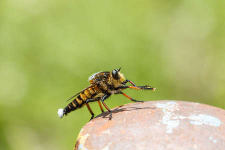 Macro shot of a robber fly in the garden