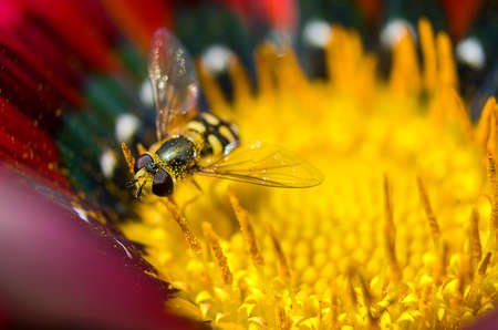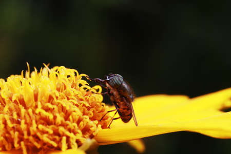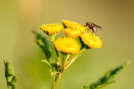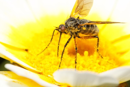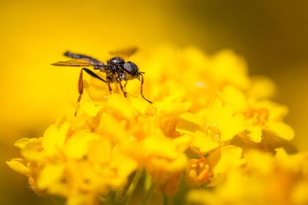Small fly on yellow flowers in the summer sun